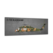 This S-70A BLAKCHAWK digital art canvas brings a modern and edgy vibe to any space. Perfect for art enthusiasts and digital art lovers, this canvas fits well in a contemporary living room or office. Relevant for birthdays, housewarmings, and art appreciation occasions.